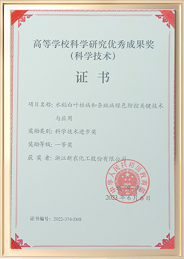 XinNong has received recognition as a national high-tech enterprise, a national intellectual property advantage enterprise, a Zhejiang Province Patent Demonstration Enterprise, and a Zhejiang Province Innovative Demonstration Enterprise. We have been award with 1 second prize in the National Science and Technology Progress Award, 2 China Patent Gold Awards, 8 first prizes in provincial and ministerial science and technology progress awards, and 56 invention patents.