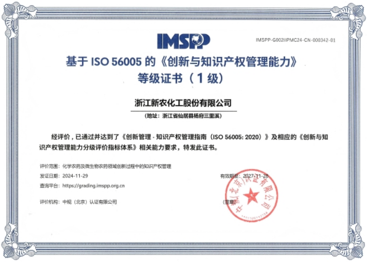 浙江新农化工股份有限公司(股票代码002942)始建于1981年,是集科研、开发、生产和营销为一体的国家级重点高新技术企业,于2018年12月5日在深圳证券交易所上市。